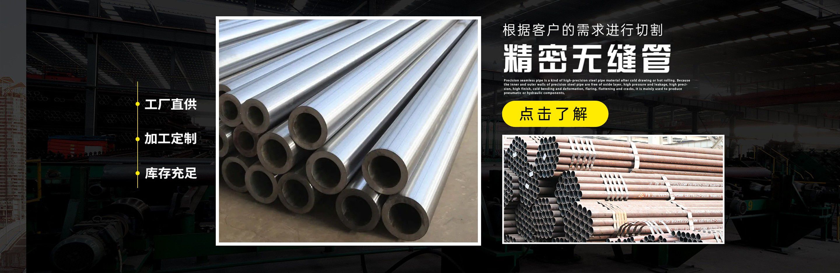 山東永迪金屬材料有限公司位于山東省聊城市開發區,北靠濟館高速公路,西鄰京九鐵路緊靠省道,交通十分便利。主要銷售精密光亮管,精密異型管,無縫精密管,精軋管,冷軋鋼管等產品?! 」句N售精密無縫鋼管均為國標GB/T3639-2008執行標準,流體輸送為國標GB/T8163-2008執行標準,結構為國標GB/T8162-2008執行標準,公司選用優質的生產原材料。公司產品的顯著特點是高精度、高質量、高光潔度、鋼管的內外壁尺寸精密度、機械工藝性能極佳,產品廣泛應用于汽車、摩托車、電動車的減震、建筑鋼材、精密機械加工、精密油缸、電力、船舶、軸承等以及中低壓管材的需求?! ∩綎|永迪金屬材料有限公司將嚴格企業管理,強化產品質量,一流的團隊為客戶做好一流的服務。本著信譽第一,薄利多銷的原則,以優質的服務,靈活的經營模式開拓市場;在廣大新老客戶的大力協助支持下,不斷發展壯大,已成為山東較大型的鋼管銷售經營公司。誠信是企業的生命,您的需要是我們的立業之本。我們將竭誠為新老客戶提供過硬的產品和優質的服務,也竭誠歡迎廣大新老客戶來電、來函,來人洽談業務,指導工作。 經營理念:同樣的鋼管比質量、同樣的質量比價格、同樣的價格比服務、 同樣的服務比信譽?! ∑髽I精神:團結拼搏、艱苦奮斗、敬業奉獻、務實求新?! 》兆?..